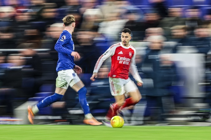 Gabriel Martinelli of Arsenal breaks with the ball during the Premier League match Everton vs Arsenal at Hill Dickinson Stadium, Liverpool, United Kingdom, 20th December 2025, Credit:Ae Cosgrove/News Images / Avalon