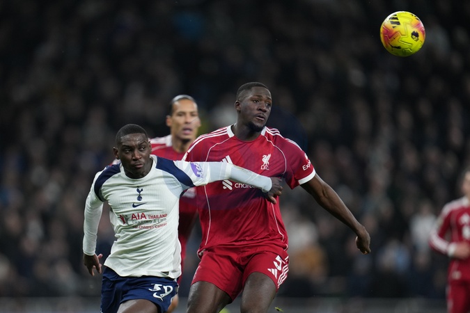 Randal Kolo Muani of Tottenham Hotspur and Ibrahima Konaté of Liverpool during the Premier League match Tottenham Hotspur vs Liverpool at Tottenham Hotspur Stadium, London, United Kingdom, 20th December 2025, Credit:Harvey Murphy/News Images / Avalon