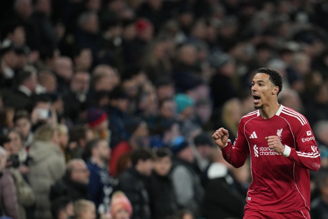 Hugo Ekitike of Liverpool celebrating with away support during the Premier League match Tottenham Hotspur vs Liverpool at Tottenham Hotspur Stadium, London, United Kingdom, 20th December 2025, Credit:Harvey Murphy/News Images / Avalon