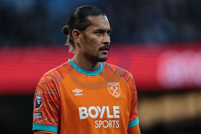 West Ham United goalkeeper Alphonse Areola during the Premier League match Manchester City vs West Ham United at Etihad Stadium, Manchester, United Kingdom, 20th December 2025, Credit:Mark Cosgrove/News Images / Avalon
