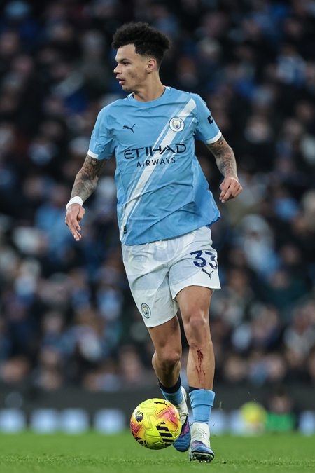 Nico O'Reilly of Manchester City with the ball during the Premier League match Manchester City vs West Ham United at Etihad Stadium, Manchester, United Kingdom, 20th December 2025, Credit:Mark Cosgrove/News Images / Avalon