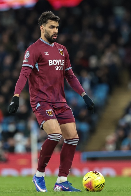 Lucas Paqueta of West Ham United with the ball during the Premier League match Manchester City vs West Ham United at Etihad Stadium, Manchester, United Kingdom, 20th December 2025, Credit:Mark Cosgrove/News Images / Avalon