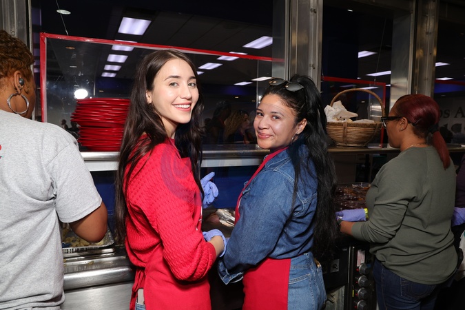 Caylee Cowan and Armida Lopez take part in the Los Angeles Mission's Annual Thanksgiving Outreach on Skid Row, Los Angeles, USA, 19 December 2025., Credit:Faye Sadou / Avalon