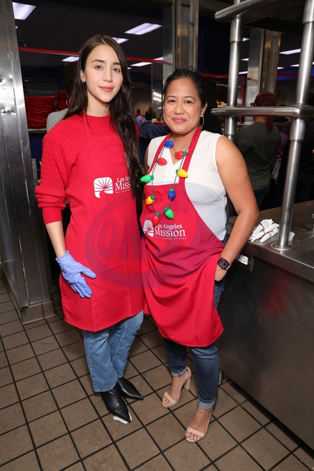 Caylee Cowan and Ysabel Jurado take part in the Los Angeles Mission's Annual Thanksgiving Outreach on Skid Row, Los Angeles, USA, 19 December 2025., Credit:Faye Sadou / Avalon