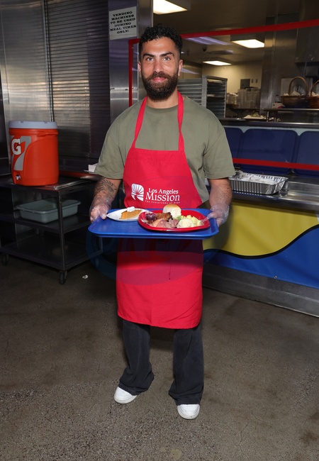 Bamshad Akbar takes part in the Los Angeles Mission's Annual Thanksgiving Outreach on Skid Row, Los Angeles, USA, 19 December 2025., Credit:Faye Sadou / Avalon