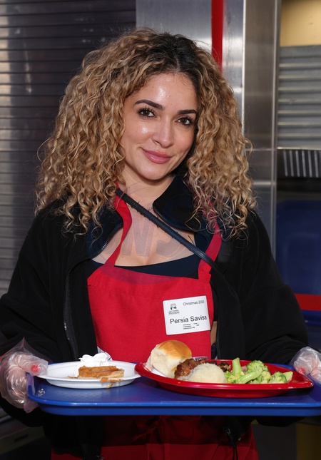 Persia Saviss takes part in the Los Angeles Mission's Annual Thanksgiving Outreach on Skid Row, Los Angeles, USA, 19 December 2025., Credit:Faye Sadou / Avalon