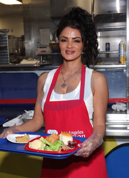 Golnesa GG Gharachedaghi takes part in the Los Angeles Mission's Annual Thanksgiving Outreach on Skid Row, Los Angeles, USA, 19 December 2025., Credit:Faye Sadou / Avalon