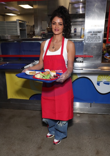 Golnesa GG Gharachedaghi takes part in the Los Angeles Mission's Annual Thanksgiving Outreach on Skid Row, Los Angeles, USA, 19 December 2025., Credit:Faye Sadou / Avalon