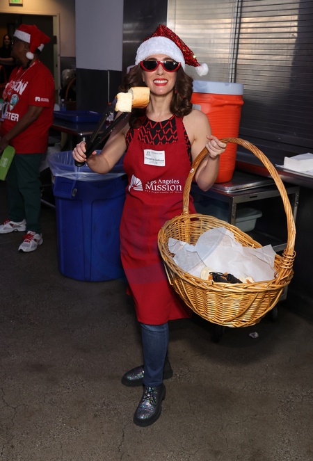 Christina DeRosa takes part in the Los Angeles Mission's Annual Thanksgiving Outreach on Skid Row, Los Angeles, USA, 19 December 2025., Credit:Faye Sadou / Avalon
