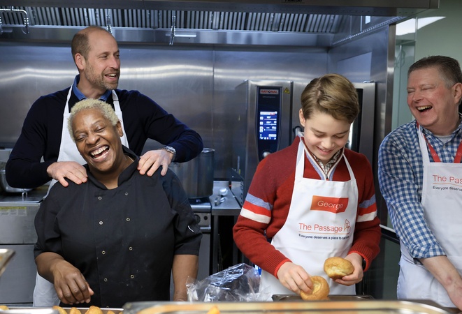 16/12/2025, London, UK. The Prince of Wales and Prince George in the kitchen of The Passage with Head Chef Claudette and CEO of The Passage Mick Clarke, as they help prepare the Christmas dinner., Credit:Andrew Parsons/Kensington Palace / Avalon