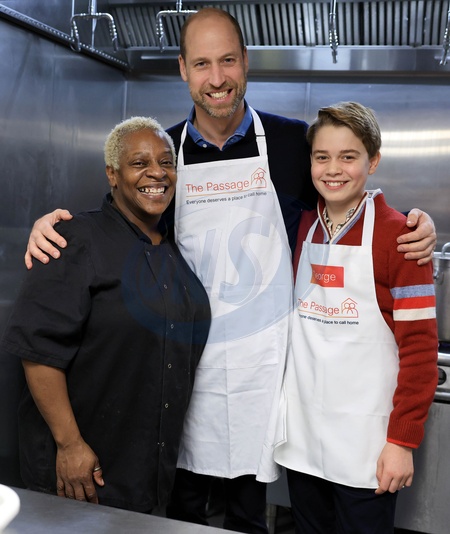 16/12/2025, London, UK. The Prince of Wales and Prince George in the kitchen of the Passage with Head Chef Claudette during their visit to the Passage to help prepare the Christmas dinner., Credit:Andrew Parsons/Kensington Palace / Avalon
