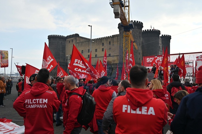 Piazza Municipio, a general strike called by the CGIL against the budget plan. Naples, Italy 12 December 2025, Credit:Felice De Martino / Avalon