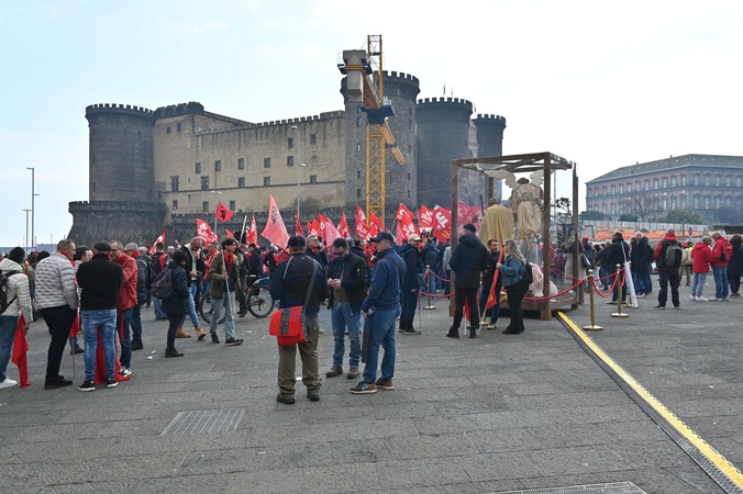 Piazza Municipio, a general strike called by the CGIL against the budget plan. Naples, Italy 12 December 2025, Credit:Felice De Martino / Avalon
