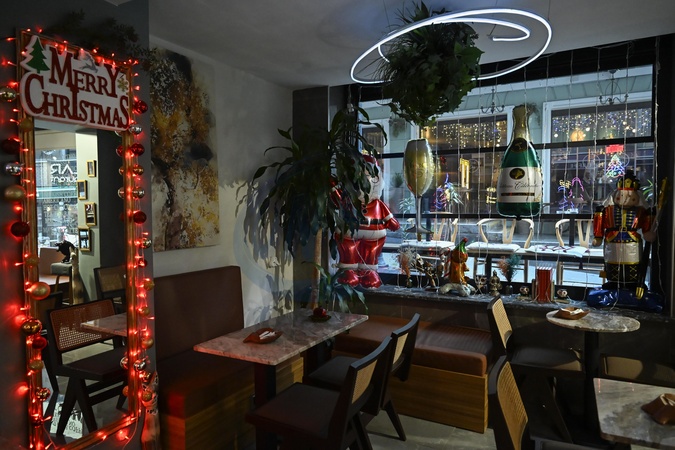 December 19, 2025, Istanbul. Decorations at Rafo Cafe in Elmadag. Tourists and locals visit the churches on Istiklal Street and the markets with decorations for Christmas 2025 and New Year's Eve 2026 in Galata Tower., Credit:Valeria Ferraro / Avalon