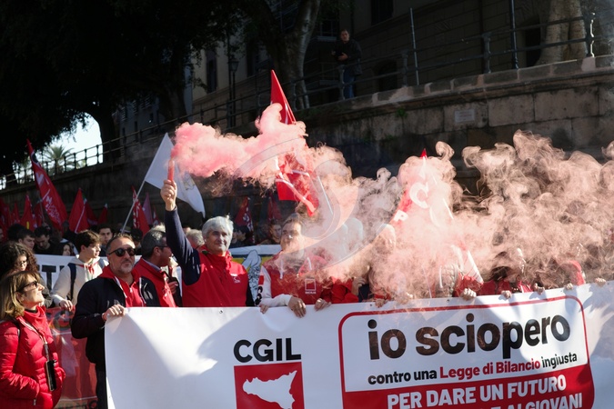 Protesters march through the city center during the national general strike called by the CGIL against the budget law. Palermo, Italy 12 December 2025, Credit:Christian Bonaviri / Avalon