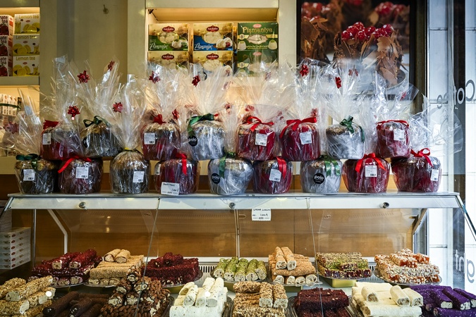 December 19, 2025, Istanbul. Panettone and traditional Turkish sweets are on sale at Polo's pastry shop in Elmadag. Tourists and locals visit the churches on Istiklal Street and the markets with decorations for Christmas 2025 and New Year's Eve 2026 in Galata Tower., Credit:Valeria Ferraro / Avalon