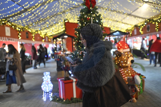December 19, 2025, Istanbul. A visitor at the Galata Tower Christmas Market. Tourists and locals visit the churches on Istiklal Street and the markets with decorations for Christmas 2025 and New Year's Eve 2026 in Galata Tower., Credit:Valeria Ferraro / Avalon