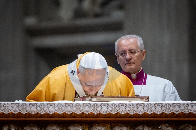 Pope Leo XIV celebrates Christmas Eve Mass in St. Peter's Basilica in Vatican City, Vatican, on 24 December 2025.