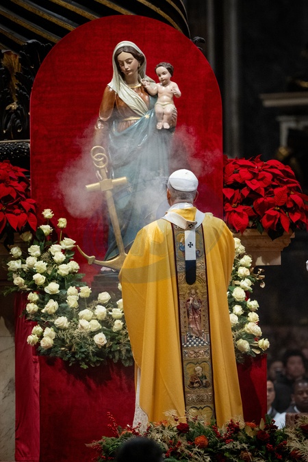 Pope Leo XIV celebrates Christmas Eve Mass in St. Peter's Basilica in Vatican City, Vatican, on 24 December 2025.