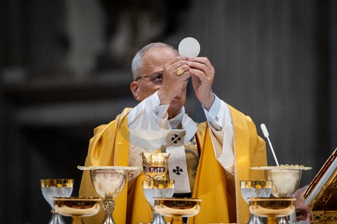 Pope Leo XIV celebrates Christmas Eve Mass in St. Peter's Basilica in Vatican City, Vatican, on 24 December 2025.