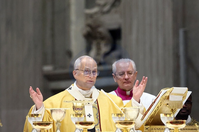 December 24, 2025, Vatican City. Vatican Basilica, celebration of the Christmas Eve Mass. Pictured is Francis Prevost and Pope Leo XIV during the Eucharist., Credit:Maria Laura Antonelli / Avalon