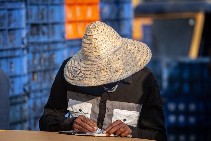Fishermen and vendors gather during the early morning auction at the Bunder fish market in Mangalore, Karnataka, on December 13, 2025. The bustling riverside market is a primary hub for the Arabian Sea catch, serving as the central point for seafood distribution across South India., Credit:Yousuf Sarfaraz / Avalon