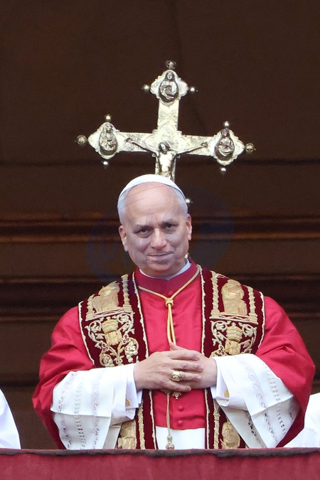 December 25, 2025, Vatican City. Balcony of St. Peter's Basilica, Christmas. Pictured is Francis Prevost, Pope Leo XIV imparting the Urbi et Orbi blessing., Credit:Maria Laura Antonelli / Avalon