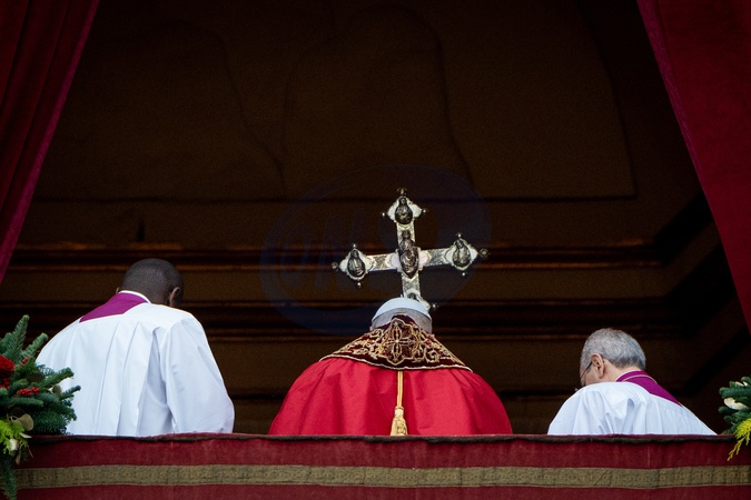 Pope Leo XIV delivers his traditional Christmas Message and ‘Urbi et Orbi’ Blessing from the balcony of St Peter's Basilica overlooking Saint Peter's Square in Vatican City, Vatican on 25 December 2025.