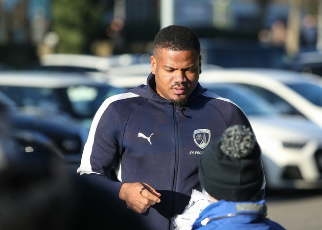 Vontae Daley-Campbell of Chesterfield arrives ahead of the Sky Bet League 2 match Chesterfield vs Notts County at SMH Group Stadium, Chesterfield, United Kingdom, 26th December 2025, Credit:Richard Bierton/News Images / Avalon