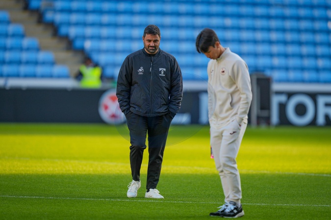 Swansea City Manager Vítor Matos inspects the pitch during the Sky Bet Championship match Coventry City vs Swansea City at Coventry Building Society Arena, Coventry, United Kingdom, 26th December 2025, Credit:Maynard Manyowa/News Images / Avalon