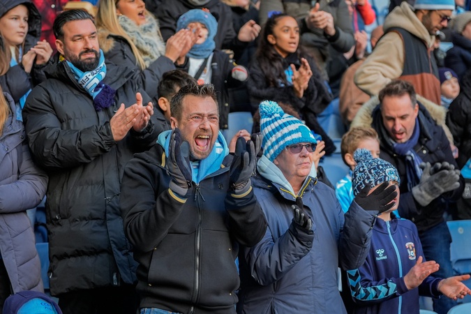 A Coventry fan sings during the Sky Bet Championship match Coventry City vs Swansea City at Coventry Building Society Arena, Coventry, United Kingdom, 26th December 2025, Credit:Maynard Manyowa/News Images / Avalon