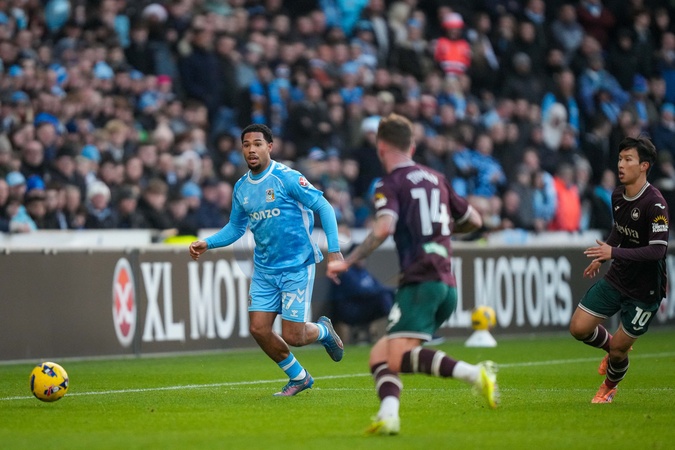 Milan van Ewijk, of Coventry City runs with the ba;; during the Sky Bet Championship match Coventry City vs Swansea City at Coventry Building Society Arena, Coventry, United Kingdom, 26th December 2025, Credit:Maynard Manyowa/News Images / Avalon