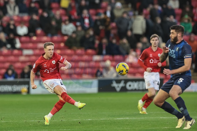 Davis Keillor-Dunn of Barnsley shoots on goal from 40 yards out during the Sky Bet League 1 match Barnsley vs Mansfield Town at Oakwell, Barnsley, United Kingdom, 26th December 2025, Credit:Mark Cosgrove/News Images / Avalon