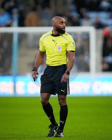Referee Samuel Allison during the Sky Bet Championship match Coventry City vs Swansea City at Coventry Building Society Arena, Coventry, United Kingdom, 26th December 2025, Credit:Maynard Manyowa/News Images / Avalon