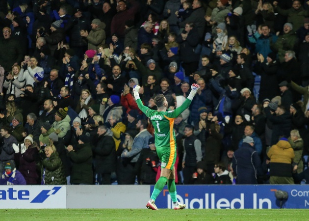 Chesterfield goalkeeper Zach Hemming celebrates during the Sky Bet League 2 match Chesterfield vs Notts County at SMH Group Stadium, Chesterfield, United Kingdom, 26th December 2025, Credit:Richard Bierton/News Images / Avalon