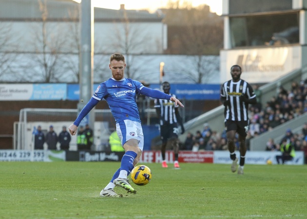 Tom Naylor of Chesterfield shoots on goal during the Sky Bet League 2 match Chesterfield vs Notts County at SMH Group Stadium, Chesterfield, United Kingdom, 26th December 2025, Credit:Richard Bierton/News Images / Avalon