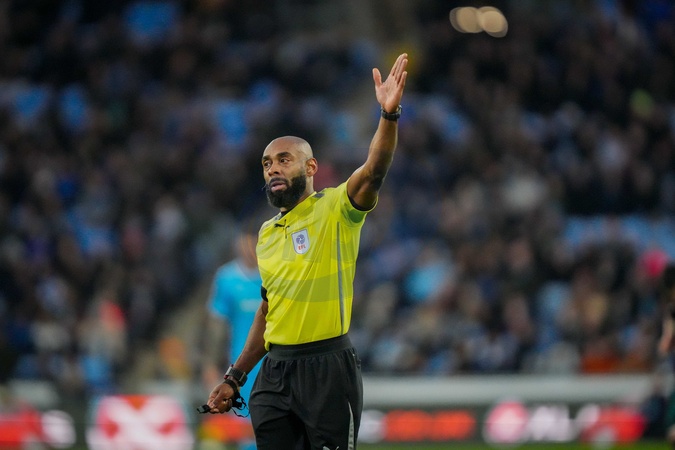 Referee Samuel Allison during the Sky Bet Championship match Coventry City vs Swansea City at Coventry Building Society Arena, Coventry, United Kingdom, 26th December 2025, Credit:Maynard Manyowa/News Images / Avalon