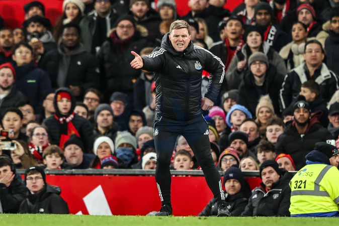 Eddie Howe manager of Newcastle United gives his team instructions during the Premier League match Manchester United vs Newcastle United at Old Trafford, Manchester, United Kingdom, 26th December 2025, Credit:Ae Cosgrove/News Images / Avalon