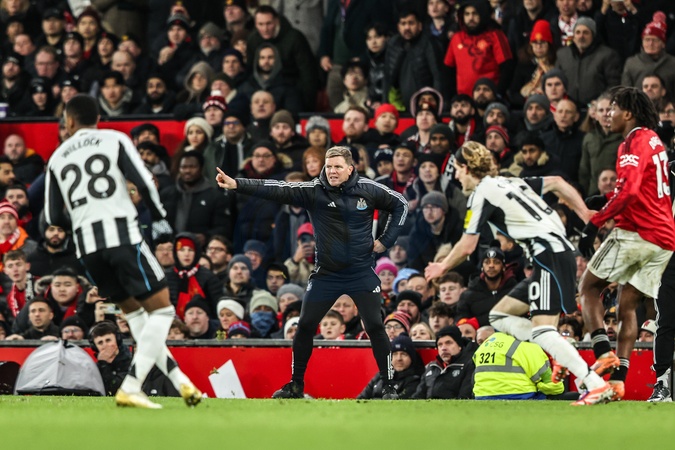 Eddie Howe manager of Newcastle United gives his team instructions during the Premier League match Manchester United vs Newcastle United at Old Trafford, Manchester, United Kingdom, 26th December 2025, Credit:Ae Cosgrove/News Images / Avalon