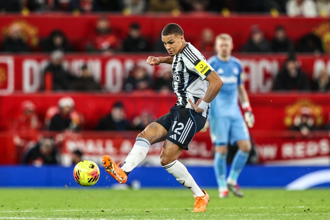 Malick Thiaw of Newcastle United passes the ball during the Premier League match Manchester United vs Newcastle United at Old Trafford, Manchester, United Kingdom, 26th December 2025, Credit:Ae Cosgrove/News Images / Avalon