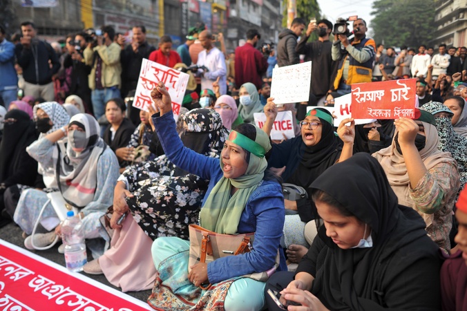 27 December 2025 Chattogram, Bangladesh- Inqilab Mancha stages sit-in demonstration in Chattogram demanding justice for the murder of Shaheed Osman Hadi, the pioneer of the Bangladesh-India anti-hegemony movement., Credit:Md Rafayat Haque Khan / Avalon