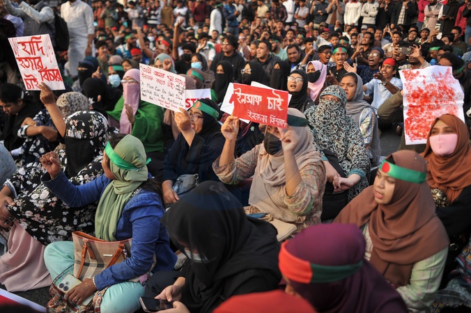 27 December 2025 Chattogram, Bangladesh- Inqilab Mancha stages sit-in demonstration in Chattogram demanding justice for the murder of Shaheed Osman Hadi, the pioneer of the Bangladesh-India anti-hegemony movement., Credit:Md Rafayat Haque Khan / Avalon