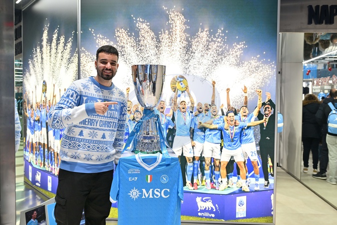 Napoli's Super Cup win in Riyadh is on display at the store in Piazza San Domenico Maggiore.