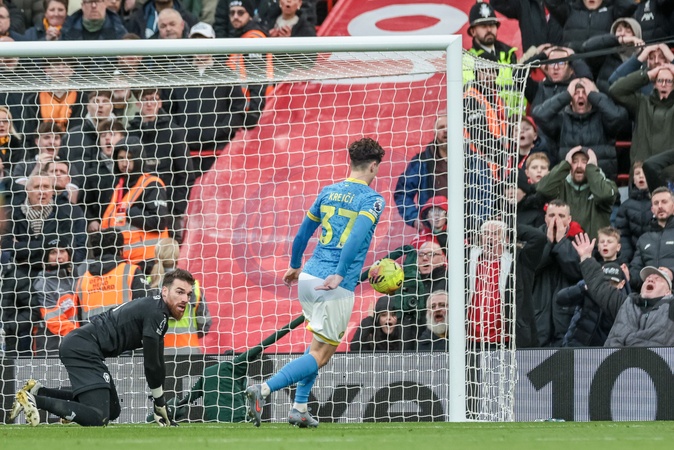 Ladislav Krejci of Wolverhampton Wanderers class the ball off the line during the Premier League match Liverpool vs Wolverhampton Wanderers at Anfield, Liverpool, United Kingdom, 27th December 2025, Credit:Mark Cosgrove/News Images / Avalon