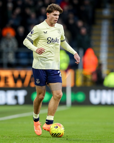 Tyler Dibling of Everton with ball at his feet during the Premier League match Burnley vs Everton at Turf Moor, Burnley, United Kingdom, 27th December 2025, Credit:Jorge Horsted/News Images / Avalon