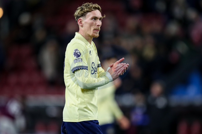 James Garner of Everton claps fans after the Premier League match Burnley vs Everton at Turf Moor, Burnley, United Kingdom, 27th December 2025, Credit:Jorge Horsted/News Images / Avalon