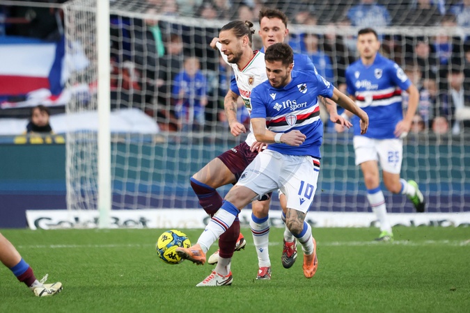 Ferraris Stadium. Soccer, Serie B, Day 18, Sampdoria vs. Reggiana. Pictured are Cherubini and Quaranta. Genova, Italy 27 December 2025, Credit:Gabriele Siri / Avalon