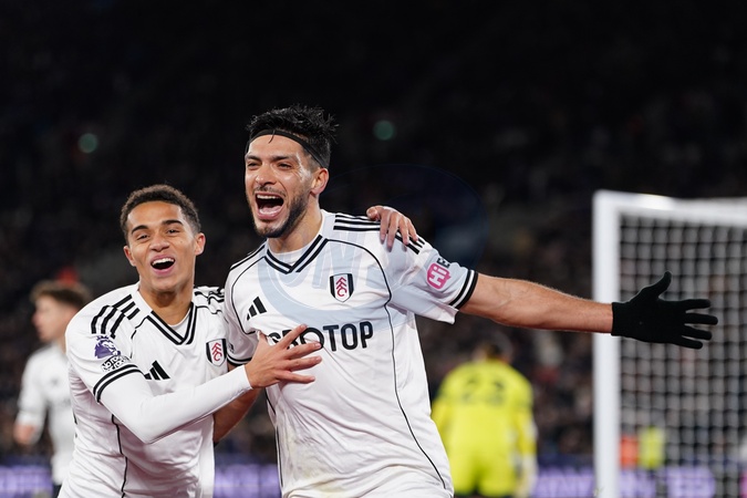 Raul Jimenez of Fulham scores to make it 0-1 during the Premier League match West Ham United vs Fulham at London Stadium, London, United Kingdom, 27th December 2025, Credit:Harvey Murphy/News Images / Avalon