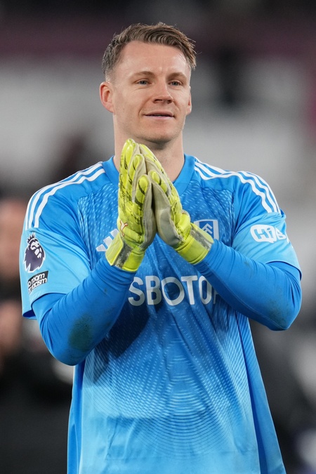 Bernd Leno of Fulham applauds away support during the Premier League match West Ham United vs Fulham at London Stadium, London, United Kingdom, 27th December 2025, Credit:Harvey Murphy/News Images / Avalon