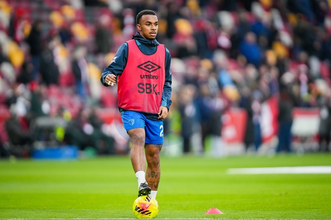 Eli Junior Kroupi of Bournemouth warms up during the Premier League match Brentford vs Bournemouth at The Gtech Community Stadium, London, United Kingdom, 27th December 2025, Credit:Maynard Manyowa/News Images / Avalon